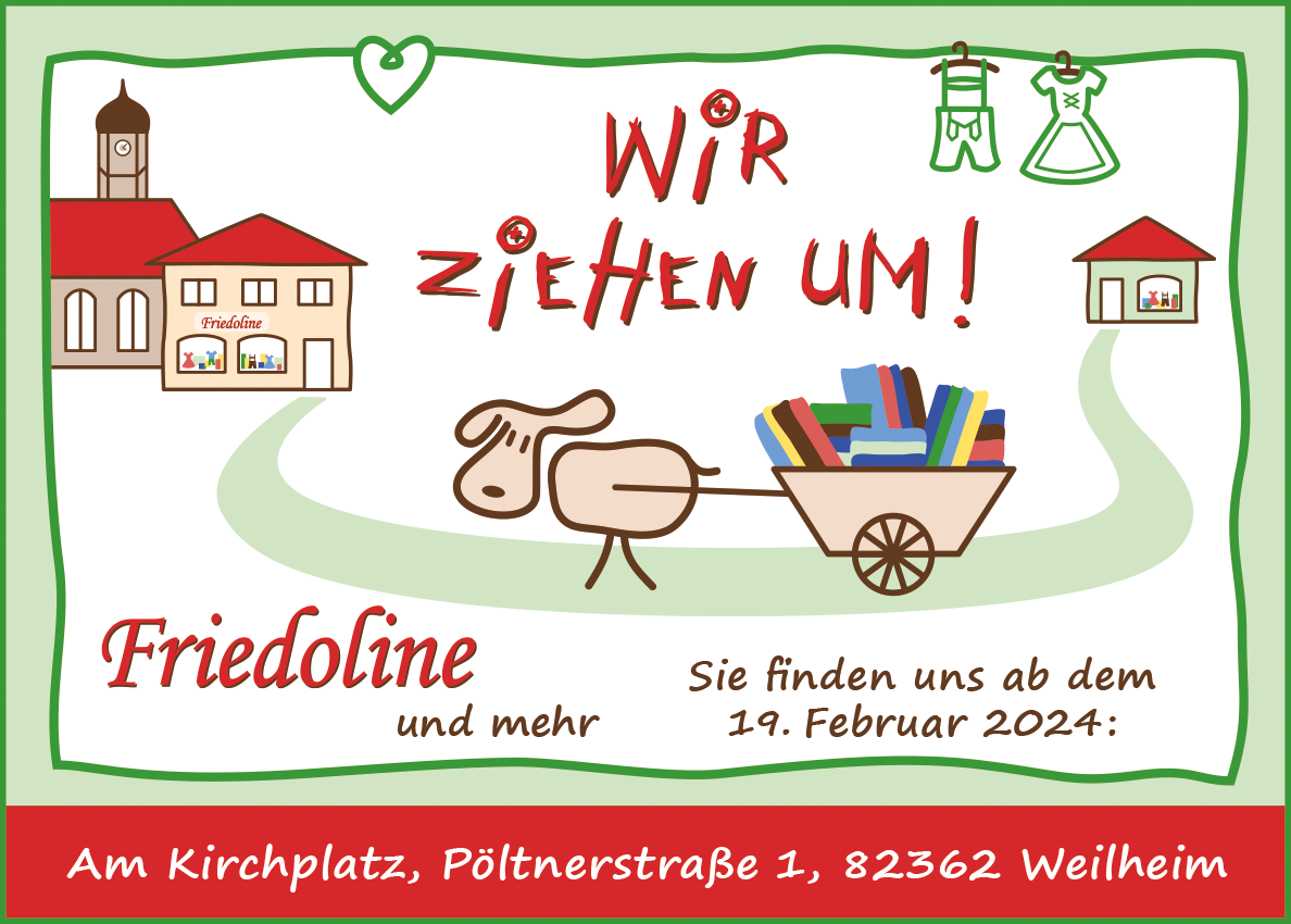 * Ab dem 19. Februar 2024 strahlt Friedoline dann im neuen Glanz am Kirchplatz (Pöltnerstraße 1) - im früheren "Schreibwaren Stöppel".